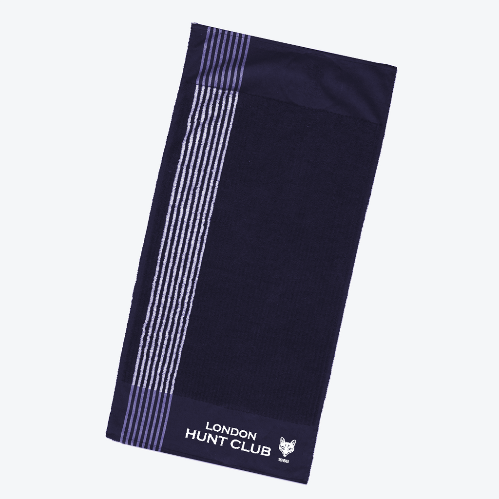 Large cotton towel with a pinstripe design. Multiple embroidery positions available.